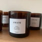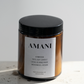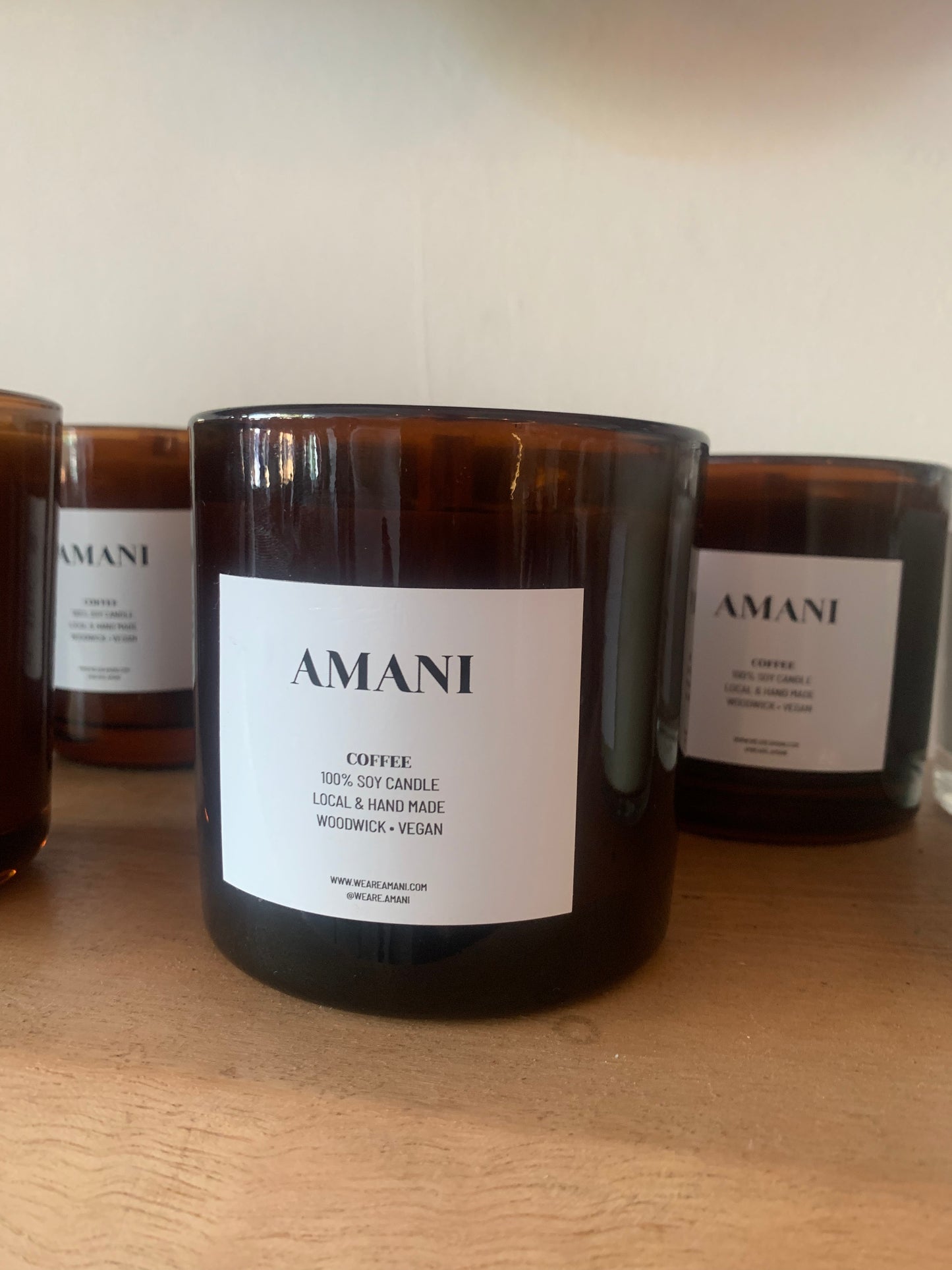 Handmade 100% soy wax candle with a wood wick and coffee beans in glass jar.