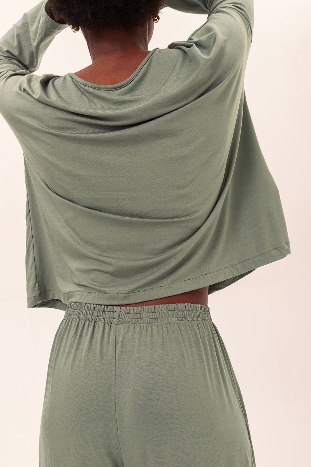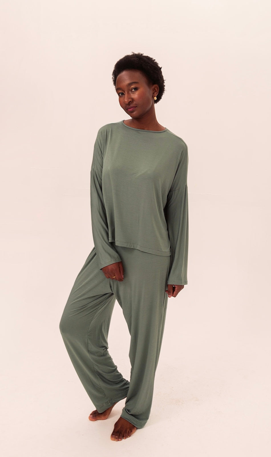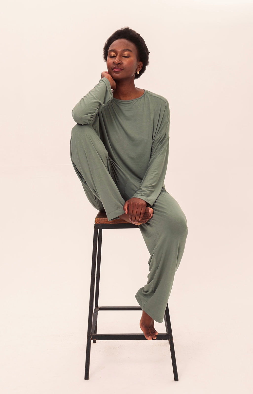 These mid-waisted, elasticated bamboo pants feature a front cord for an adjustable fit. Moisture-wicking, soft, and airy, they offer floor-length coverage that keeps you cool in warmer weather and cozy on rainy days. Perfect for lounging by the fire or enjoying a morning coffee in the sun.