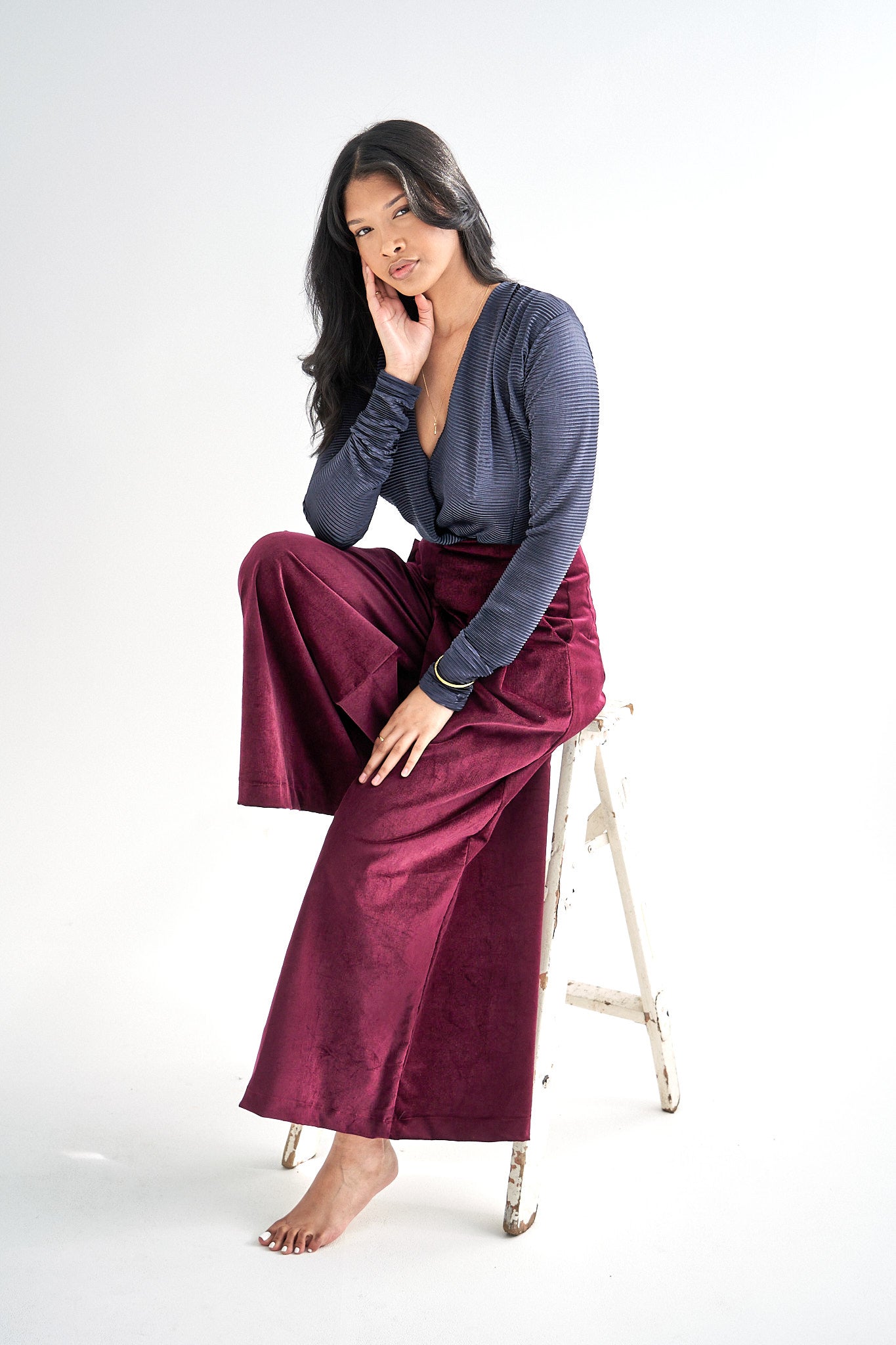 Ce pantalon évasé en velours côtelé ultra confortable change la donne dans le domaine des bas flatteurs mais confortables. Doté d'une taille haute qui rehausse les fesses et la taille, de poches profondes et d'une allure inspirée des années 70, ce pantalon allie confort et élégance d'inspiration rétro.