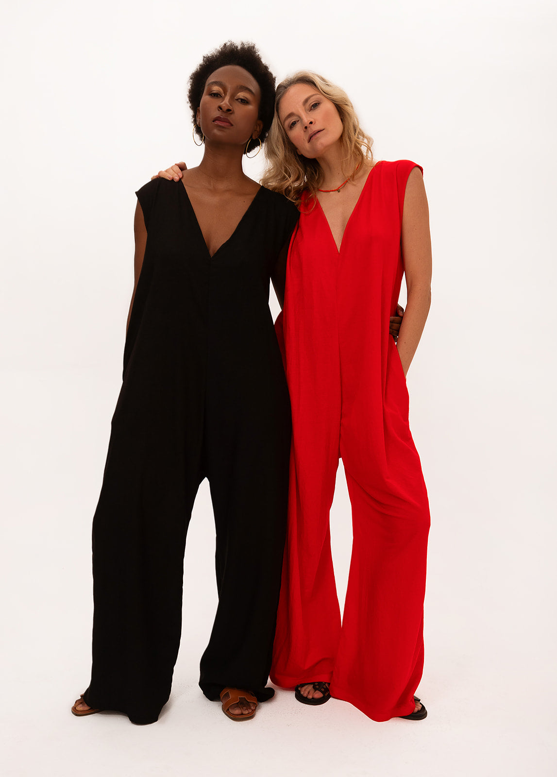 The Reba Jumpsuit—your new one-and-done go-to. This full-length jumpsuit features a sleek slide-on design, deep pockets, a low V-neck, and a modern square silhouette. Belt it or leave it loose, pair it with sneakers or heels—it does it all.